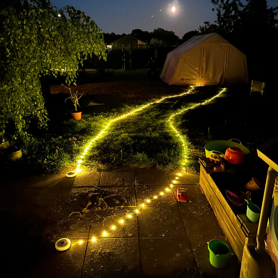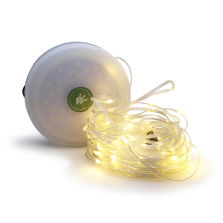 4-in-1 Cozy Camp Light fra Tryg Gear er den perfekte ledsager til dine udendørs eventyr. Med en smart kombination af lanterne og lyskæde bringer den stemningsfuld belysning til teltet, shelteret eller terrassen, så du kan nyde aftenerne i hyggeligt lys. Lanternefunktionen tilbyder tre lysstyrker, der kan tilpasses dit behov, mens den ti meter lange lyskæde giver dig mulighed for at skabe en varm atmosfære med både konstant lys, hurtige blink eller langsomme puls-effekter.